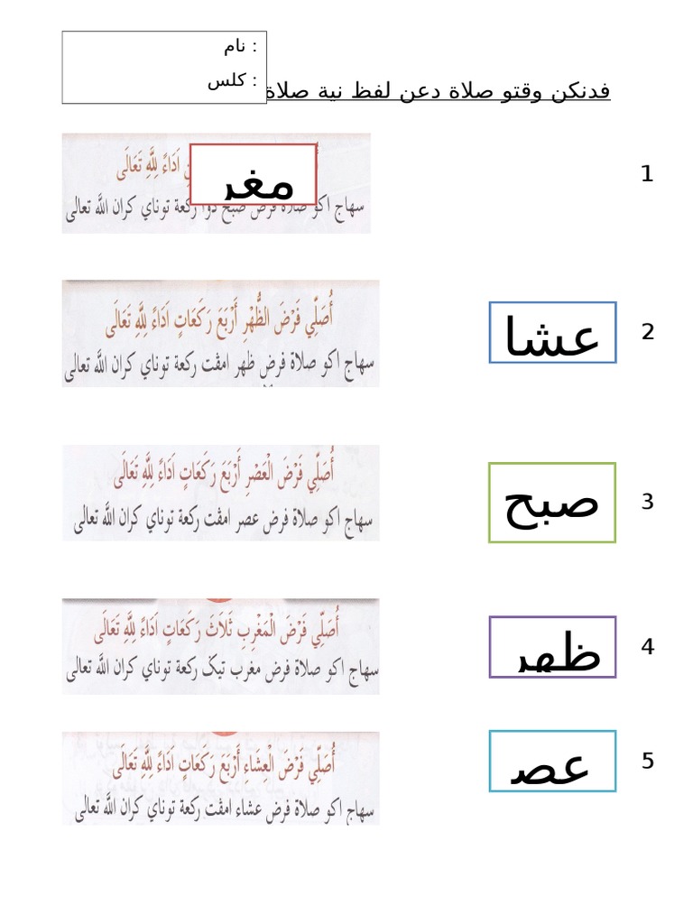 Kuiz Silang Kata. Lembaran kerja menyatakan solat fardhu untuk kanak-kanak 4 tahun ke atas. Lembaran Kerja Adab dan Akhlak.